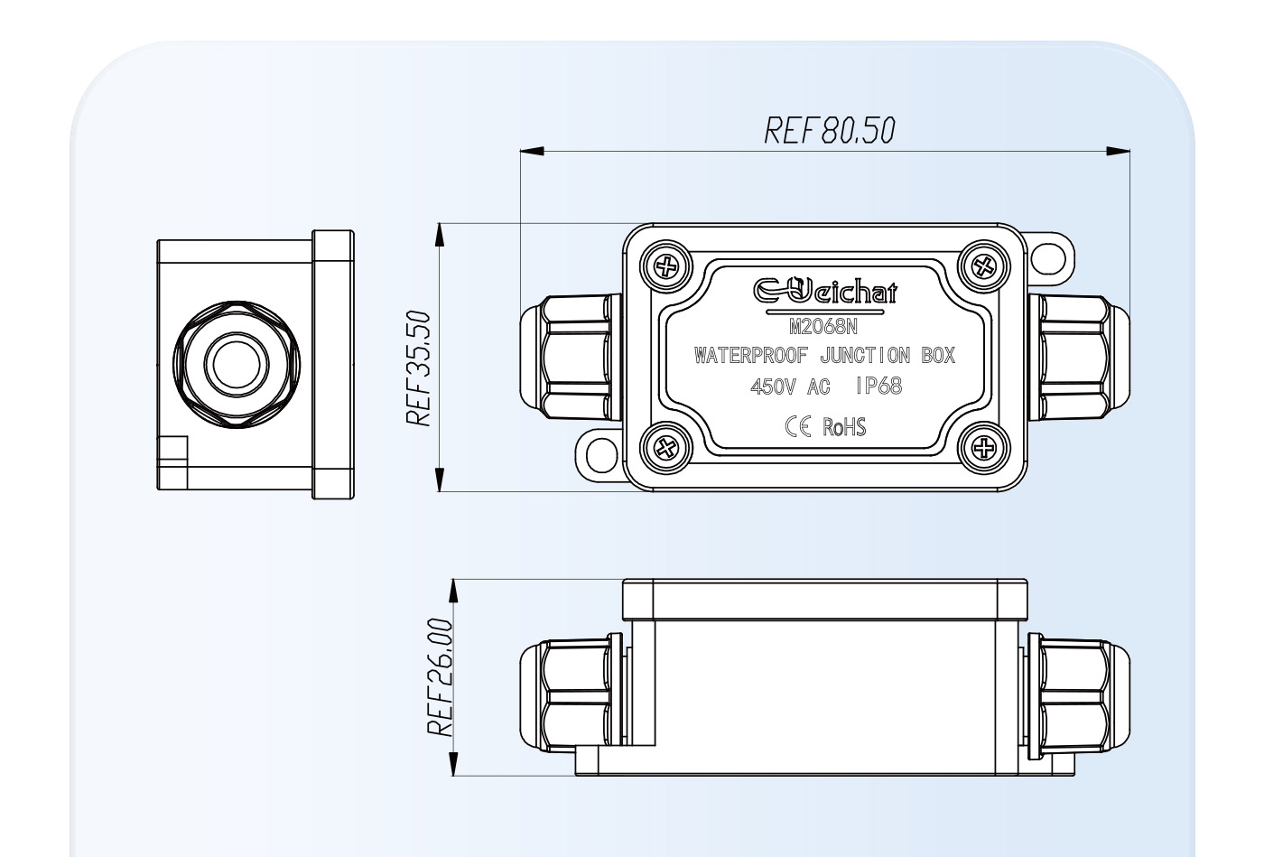 2068N-2T Waterproof Junction Box With Terminal Block 2-Way Waterproof IP68 Cable Connector