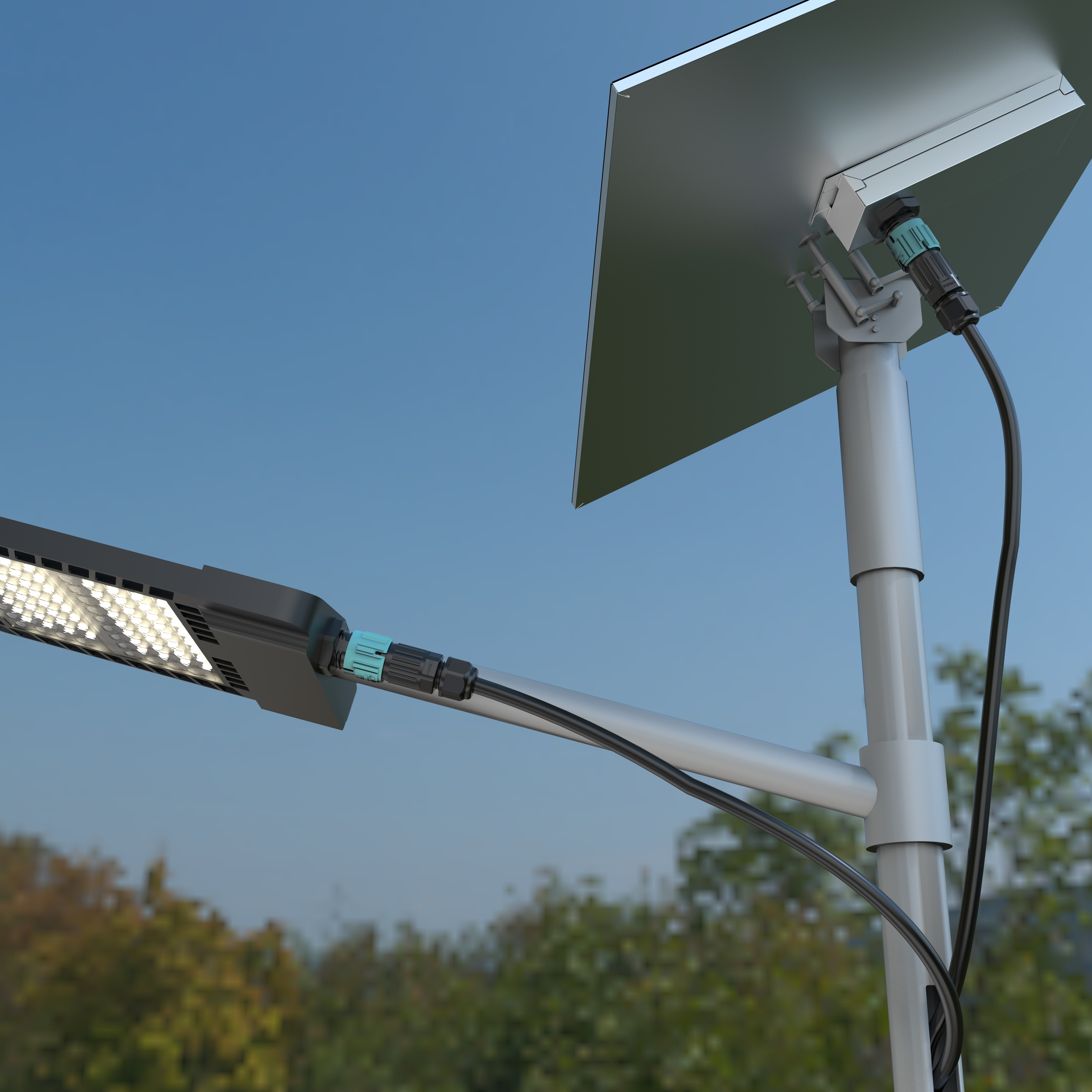 The lighting infrastructure was upgraded using a fully sealed waterproof electrical connection architecture designed for outdoor distributed lighting networks.